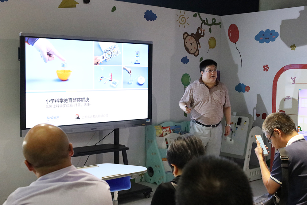 隨后,東方三位資深產(chǎn)品經(jīng)理及學(xué)科帶頭人蔣晨飛、高原璐以及江飛老師分別為大家介紹了校園科普教育綜合解決方案、Labox萊博士科學(xué)實(shí)驗(yàn)箱以及小學(xué)科學(xué)教育整體解決方案。